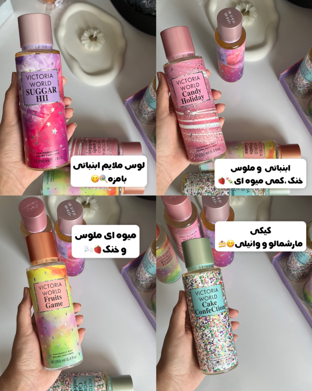 به دلیل داشتن حجم مناسب به راحتی داخل کیف قابل حمل هستند و همچنین با دارا بودن رایحه های فانتزی و شیرین احساس خوشایندی بعد از استفاده به شما القا میکنند.