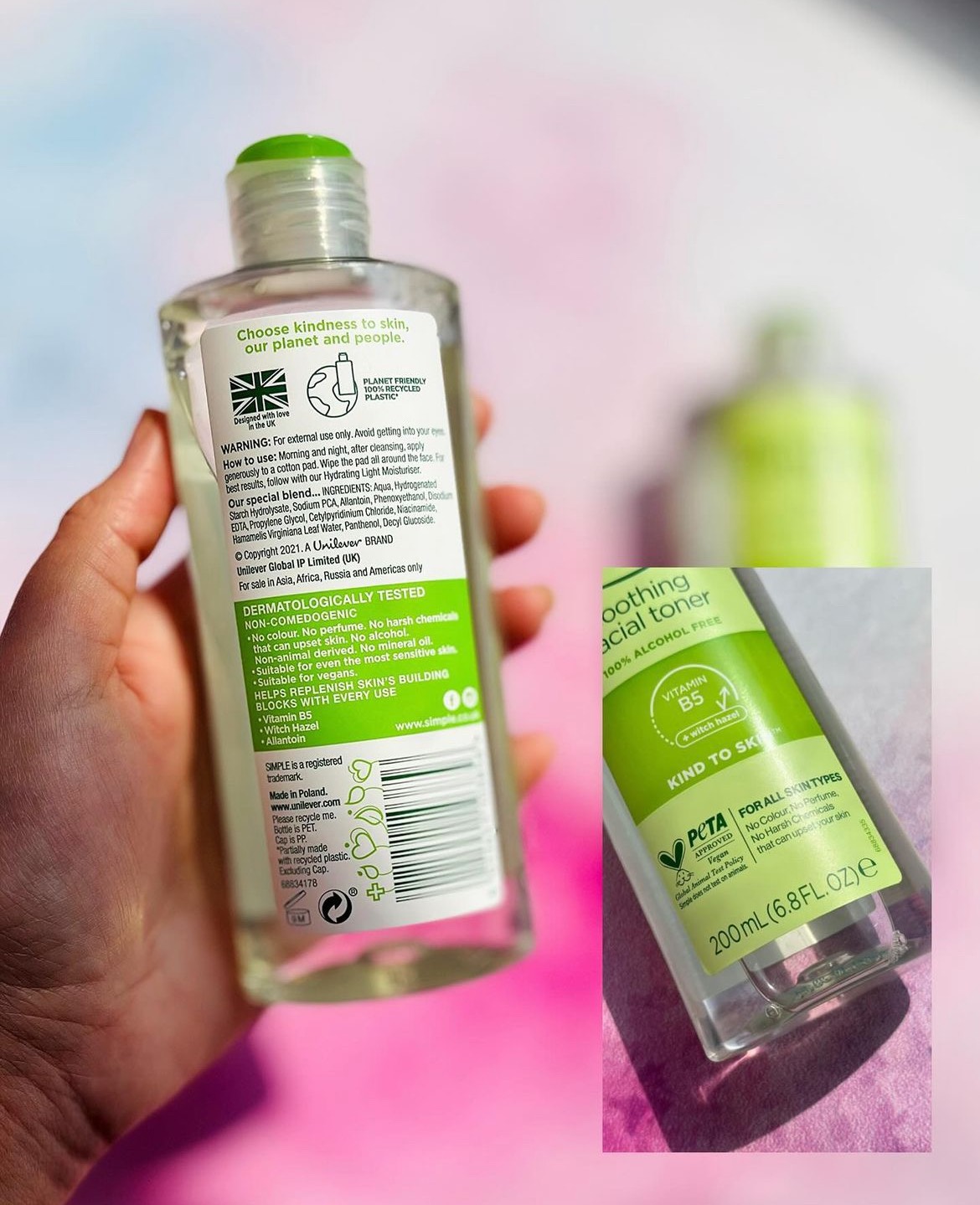 • اول از همه بگم که محصولات سیمپل تست حیوانی نداره و روی خوده محصول هم کلمه vegan درج شده،ازهمه مهم تر سیمپل محصولاتش رو از مواد ارگانیک و طبیعی تولید میکنه و فاقد هرگونه الکل ، سولفات و پارابنه به همین دلیل برای هیچ پوستی حساسیت ایجاد نمیکنه🌿🥹🤌🏻