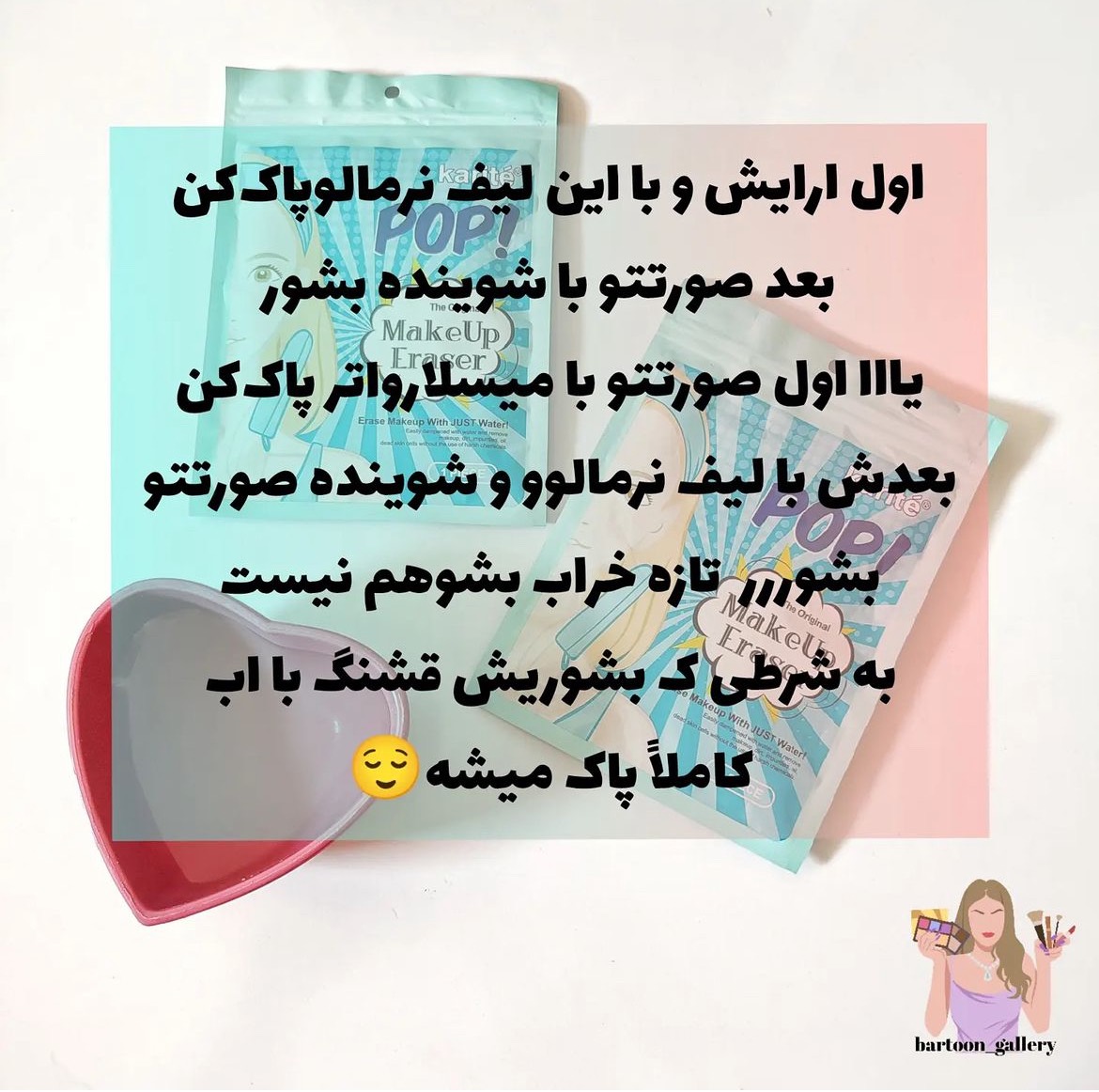 تمام آرایش صورت و چشم شما را به راحتی بدون نیاز به مواد شوینده پاک میکنه ریمل و خط چشم در حین پاک کردن پخش صورت نمیشههو رژ گونه و هر نوع آرایش را به راحتی پاک می کنه😎