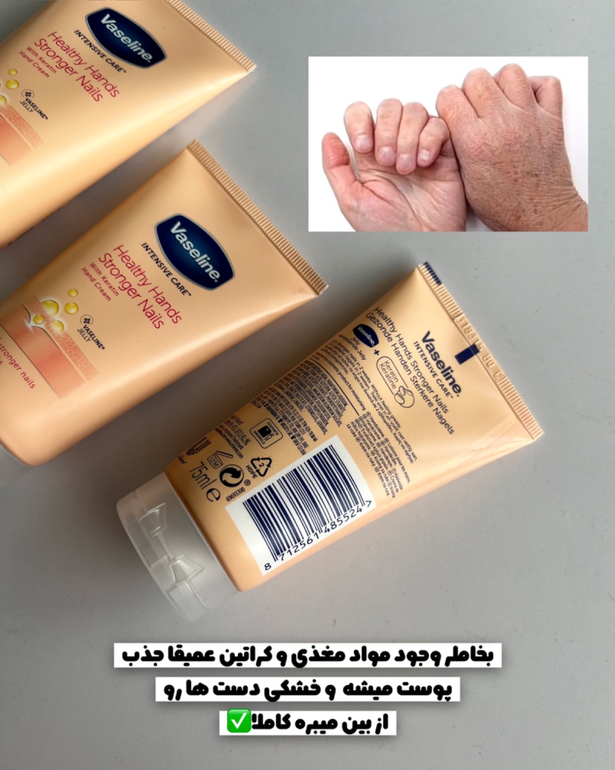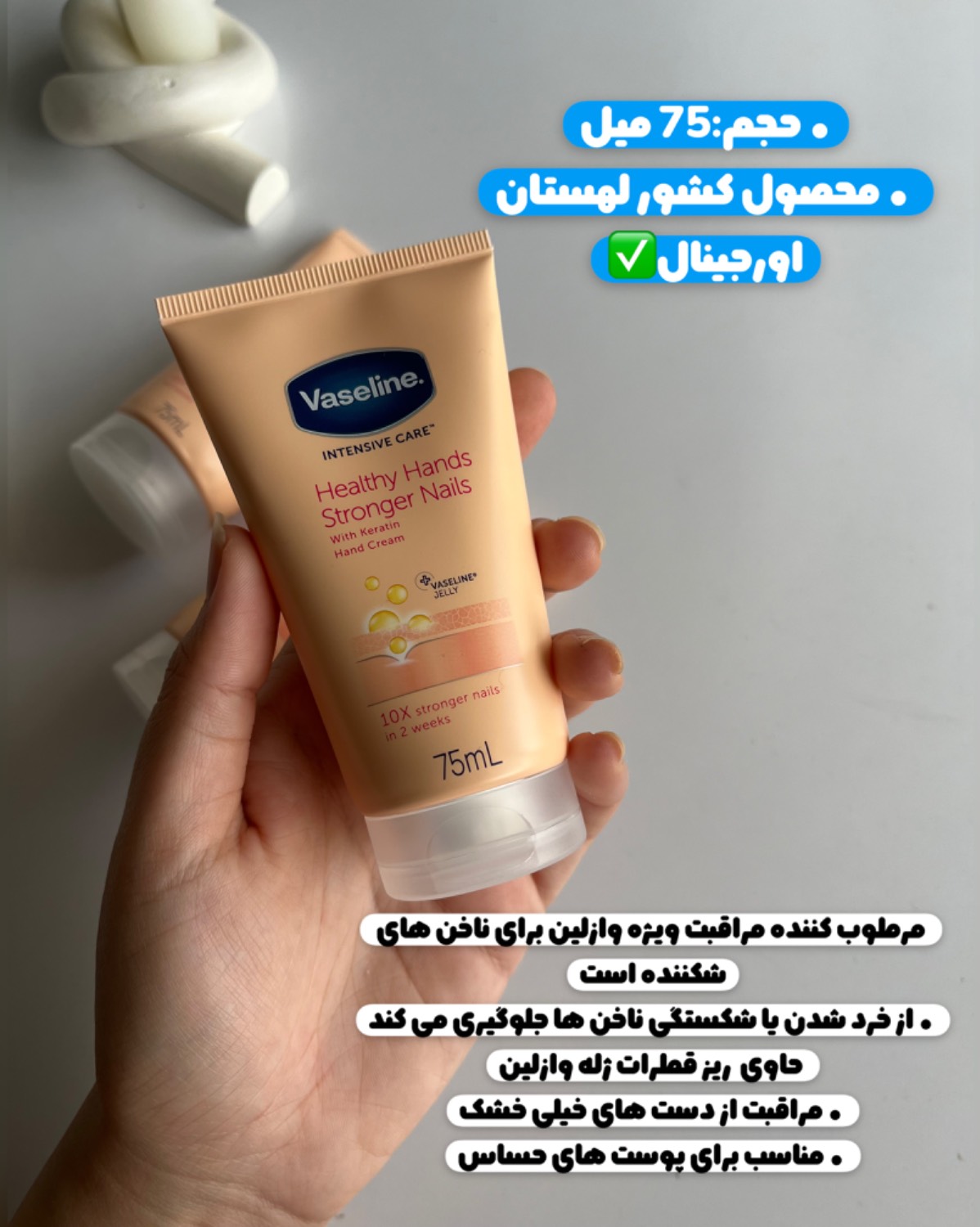 غنی شده با کراتین عمیقاً جذب پوست می شود و دست ها را از داخل مرطوب می کند و در هر بار استفاده آنها را نرم و صاف می کند همچنین از خرد شدن یا شکستگی ناخن ها جلوگیری می کند.